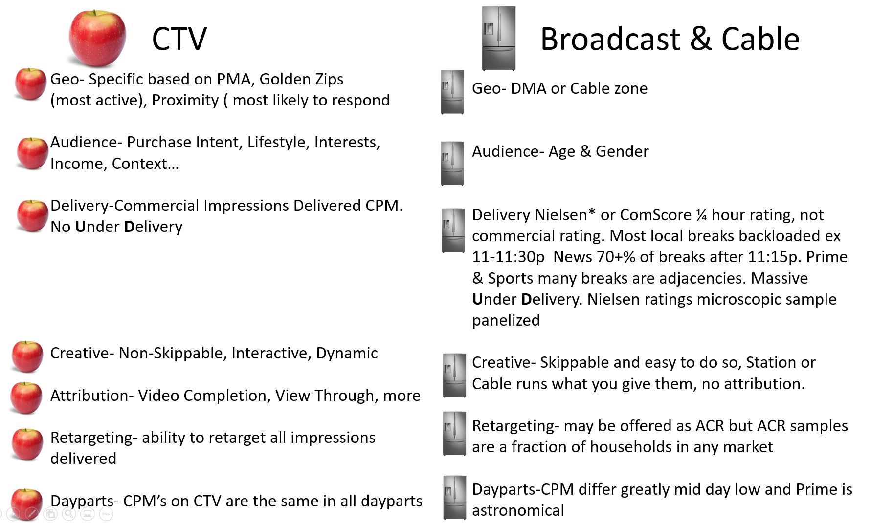 He was comparing apples to refrigerators. He is shifting more of his 2022 budget to CTV. The other day I was talking with a client, he...