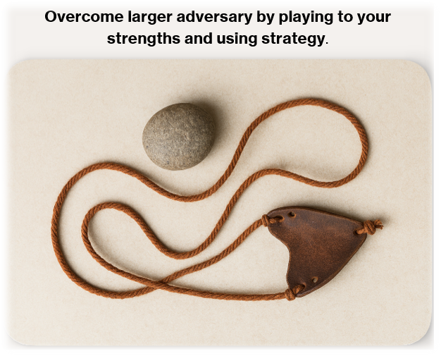 I’ve always admired the story of David and Goliath, not for its religious roots, but as the ultimate underdog story. It’s about overcoming a much larger adversary by playing to your strengths and using strategy to win against all odds.
