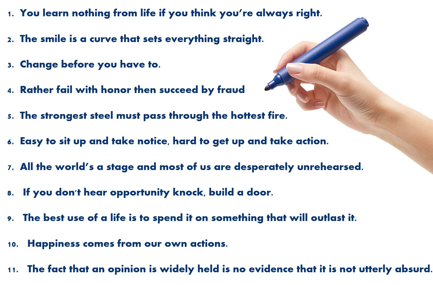 Sam shares sentences of wisdom every week, unfortunately, I don't post them weekly. Here are a few highlights from the last several...