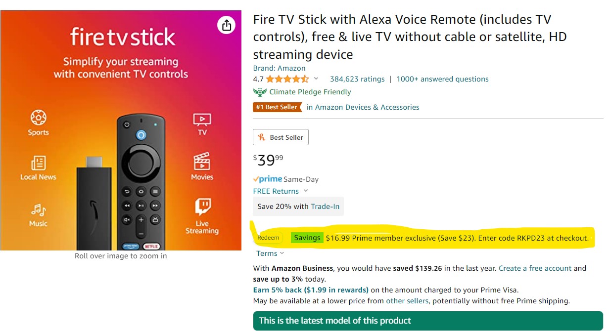 Whenever I see a good sale on CTV | Streaming devices I purchase as many as I can. I prefer Roku devices but when I see a screaming deal on Fire TV I will buy those also.