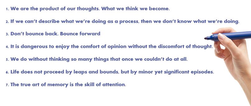 1. We are the product of our thoughts. What we think we become.