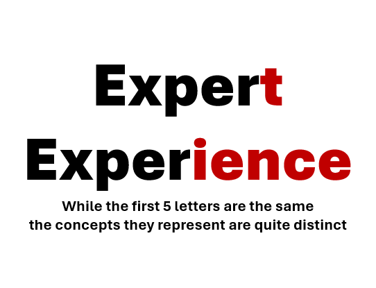 While the words "expert" and "experience" share many letters, the concepts they represent are quite distinct. Experience alone doesn't...